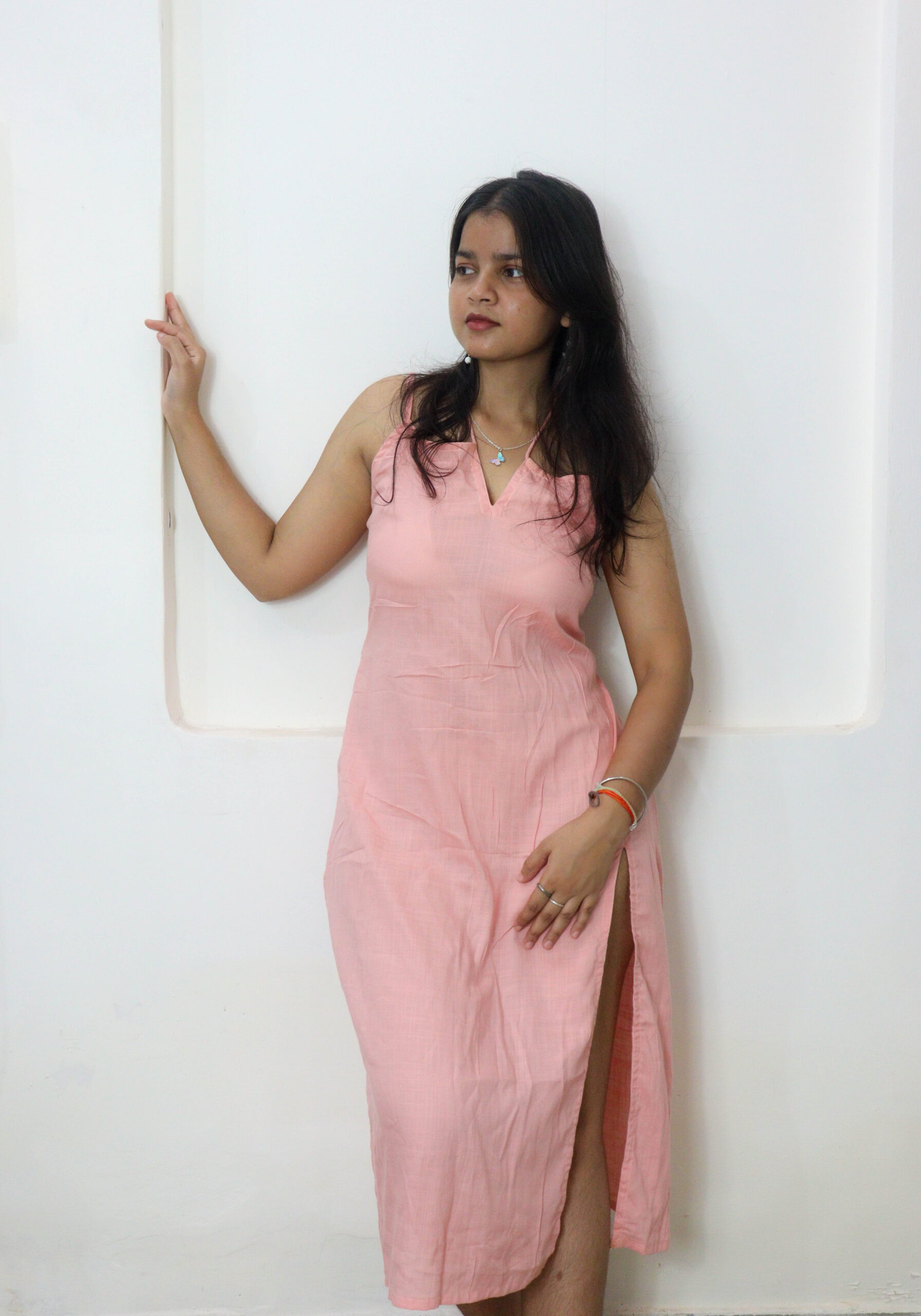 Soft and breathable blush-pink cotton dress designed for effortless everyday comfort.