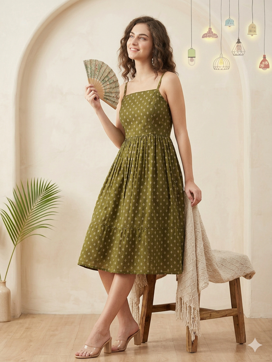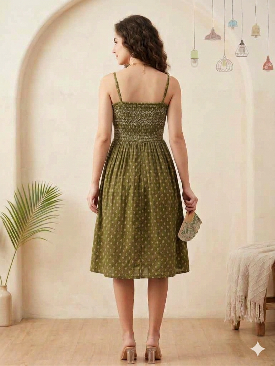 Step into effortless elegance with the BP-Olive Petal Charm Cotton Dress, a refreshing blend of earthy tones and graceful minimalism. Designed in a soothing olive green base with delicate petal-inspired motifs, this dress brings together simplicity, charm, and all-day comfort—perfect for brunch dates, casual outings, or breezy vacation days.