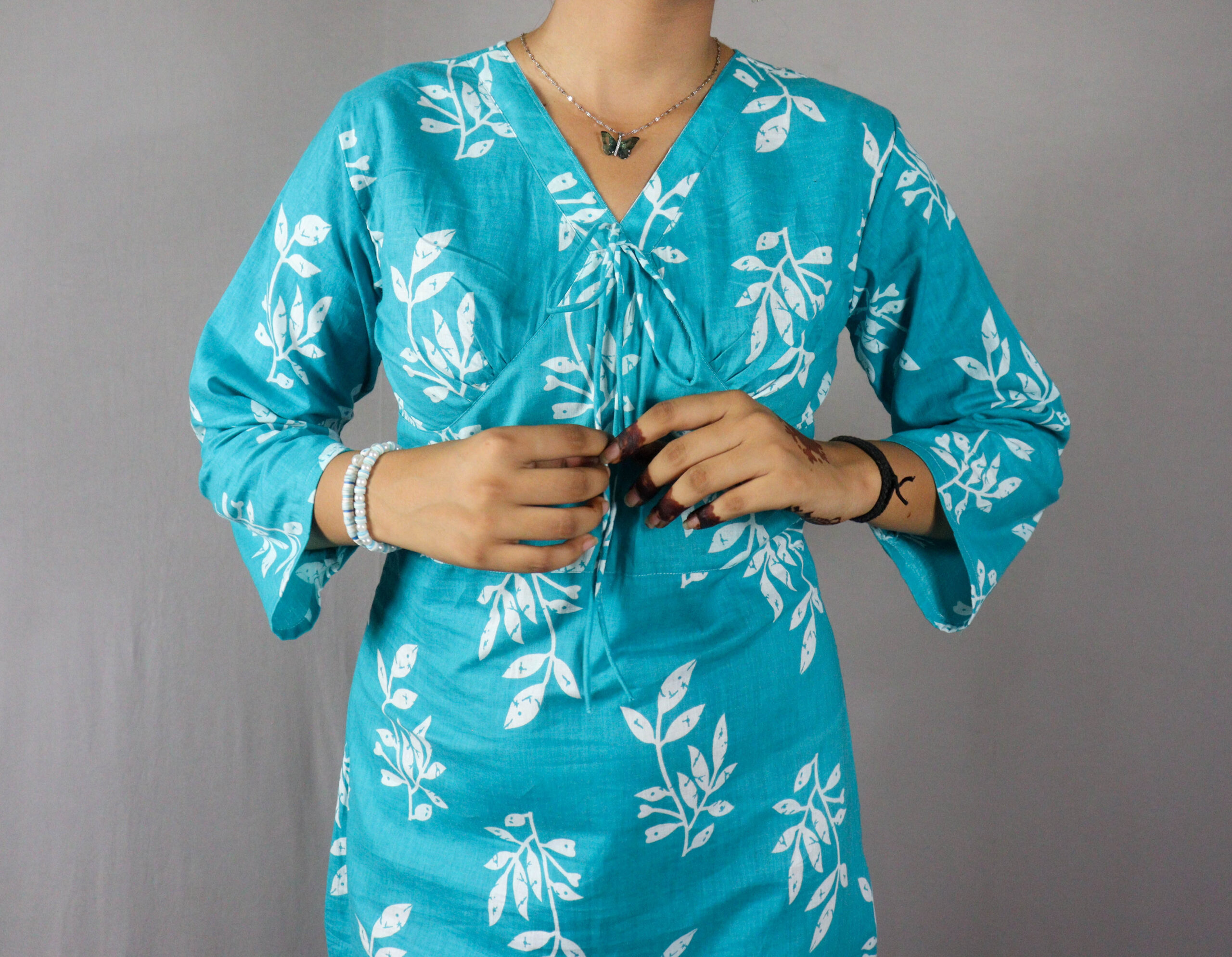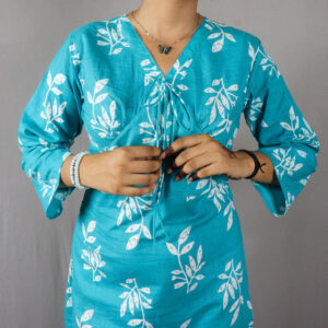 Be the first to review “BP-Turquoise Leaf Print Cotton Kurti Dress”